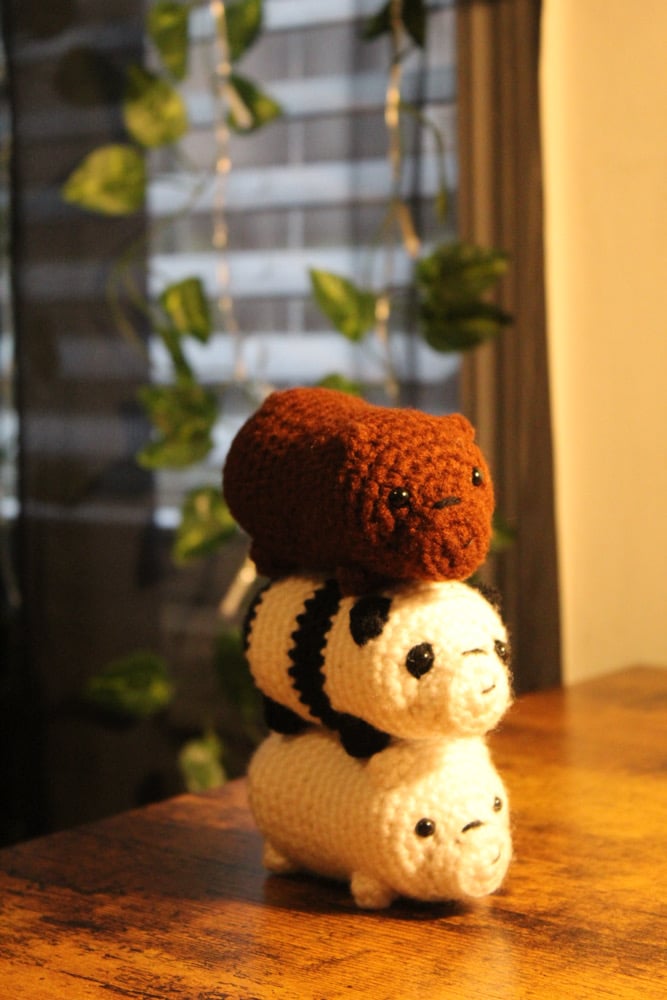 If you are a huge fan of the cartoon show, "We Bare Bears", like me, you will love these! These adorable lil bears were made to serve as decor. They are even stackable! These bears were crocheted with much love and care.